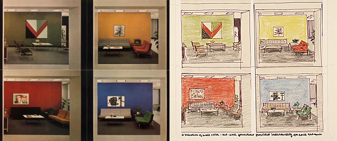 Florence Knoll, sketches for reception areas in the CBS Building, 1964